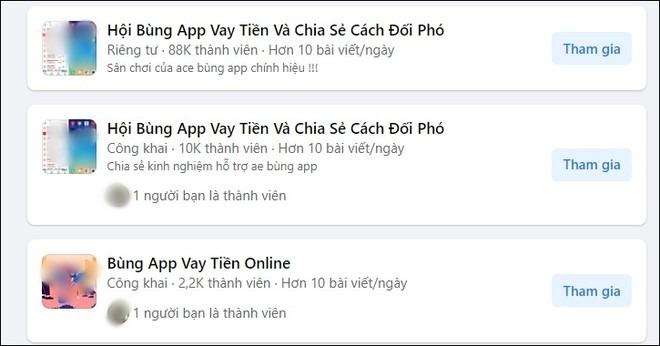Chỉ cần vào mạng gõ cụm từ khoá “bùng tiền vay”, chỉ sau vài giây đã có hàng nghìn kết quả với đủ loại tên các hội nhóm khác nhau, từ “Hội bùng App vay tiền và chia sẻ cách đối phó”; “Bùng App vay tiền online”; “Cách bùng App vay và cách đối phó”; ""Hội Bùng App/web vay tiền online và chia sẻ cách đối phó"… Các nhóm này quy tụ hàng trăm nghìn thành viên với vô số bài đăng, chia sẻ kinh nghiệm quỵt nợ mỗi ngày.