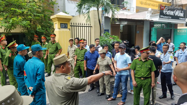 Trong phiên tòa sáng nay (23/8), 2 lớp an ninh được điều đến trước sân tòa rất sớm bảo vệ an ninh trật tự.