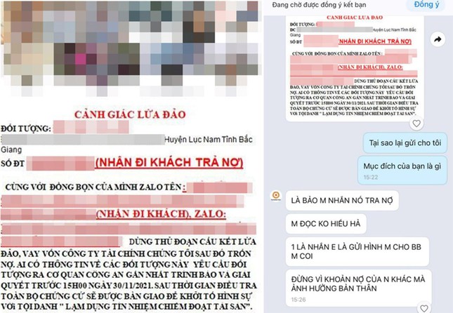 Tin vào những lời quảng cáo vay tiền qua app, nhiều người đã bị lừa tiền cọc; thậm chí các đối tượng còn “khủng bố” người thân, đến công ty người vay tiền làm việc để gây sức ép đòi nợ hoặc gán ghép hình ảnh nạn nhân với nội dung như “muốn bán dâm để trả nợ”…