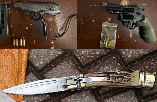 Tiến hành khám người, tổ công tác thu giữ 1 khẩu súng K59 có 4 viên đạn (1 viên đã lên nòng, 3 viên còn lại nằm trong hộp tiếp đạn) giấu trong túi áo khoác của Bảy.