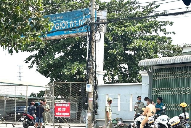 Ghi nhận của Tiền Phong, trưa nay (28/3), tại Trung tâm đăng kiểm xe cơ giới 61-09D (phường Bình Hòa, TP Thuận An, tỉnh Bình Dương) xuất hiện nhiều cảnh sát.