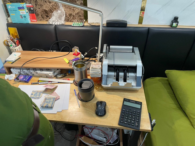 Tại hiện trường, công an thu giữ nhiều ĐTDĐ, laptop, máy tính tiền, thẻ ngân hàng, gần 1 tỷ đồng tiền mặt, 14.100 USD và một số đồ vật, tài liệu liên quan đến việc ghi lô, số đề.