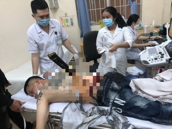Theo Thượng úy Đoàn Ngọc Quang, vào khoảng 10h sáng ngày 8/5, Khoa cấp cứu Bệnh viện Đa khoa tỉnh Khánh Hòa tiếp nhận một nam nạn nhân được người bạn đưa đến trong tình trạng vùng lưng bên trái bị thương tích do vết đâm của thanh kiếm Nhật vẫn còn dính sâu trong mô cơ.