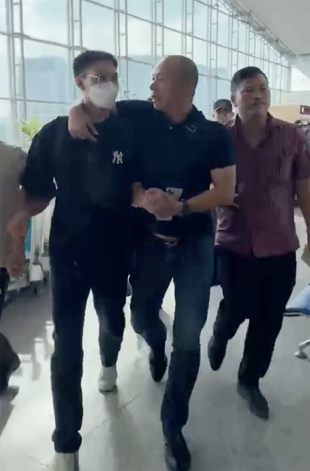 Đối tượng cầm đầu Nguyễn Ngọc Mỹ đang xếp hàng chờ làm thủ tục để lên máy bay đi Singapore thì bị Trung tá Nguyễn Thành Hưng đến “cặp cổ” bắt giữ trong sự ngỡ ngàng.