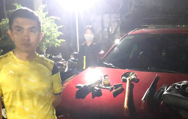 Sau khi khống chế người đi trên xe (4 nam, 3 nữ), lực lượng chức năng tiến hành kiểm tra phát hiện 2 khẩu súng ngắn loại bắn đạn cao su, 24 viên đạn cao su, có 1 viên đã lên nòng; 1 súng bút; 1 gậy ba khúc bằng kim loại; 1 con dao nhọn; 1 xẻng; 1 hộp đạn chì.