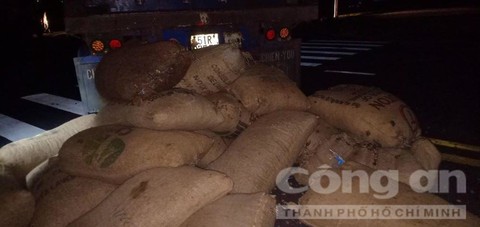 Tại hiện trường, công an thu giữ tang vật gồm 2 xe container, 42 bao hạt điều, 1 kiềm cộng lực, 1 seal bằng kim loại đã bị phá, và chiếc xe tải nói trên.