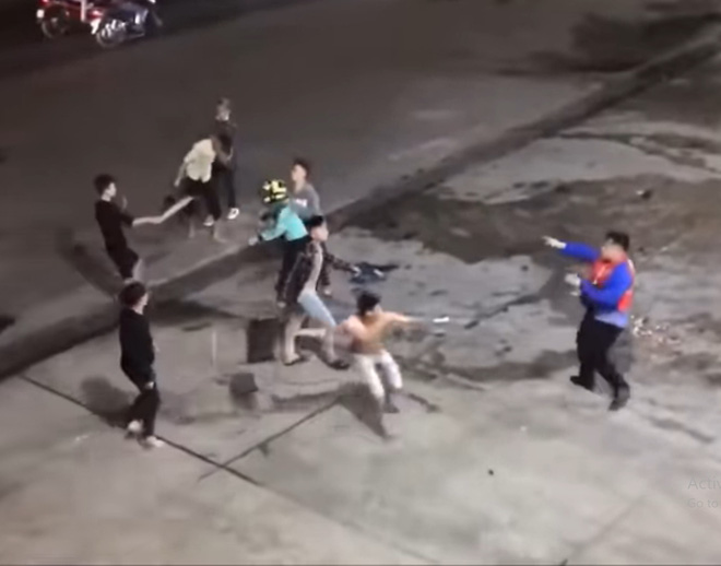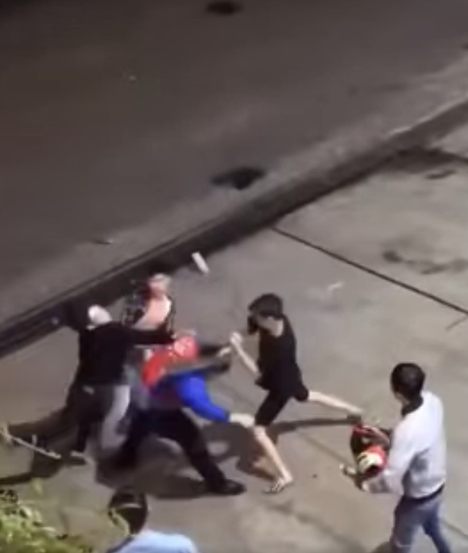 Đoạn clip ghi lại cảnh xô xát tại khu vực cây xăng. Nhóm khoảng 10 thanh niên tấn công hai người đàn ông mặc đồng phục shipper. Nhóm này dùng gậy để đập vào đầu của các shipper. Thậm chí, một thanh niên trong nhóm còn được cho là cầm khẩu súng.