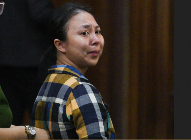 Một bị cáo khác là Nguyễn Thu Huyền cũng bật khóc. Bị cáo này lấy tay ôm mặt mình đang giàn giụa nước mắt. Như Huyền từng nói, sự tham lam đã "giết chết" Huyền, để không ngờ được rằng, một ngày phải đón nhận kết cục cay đắng.