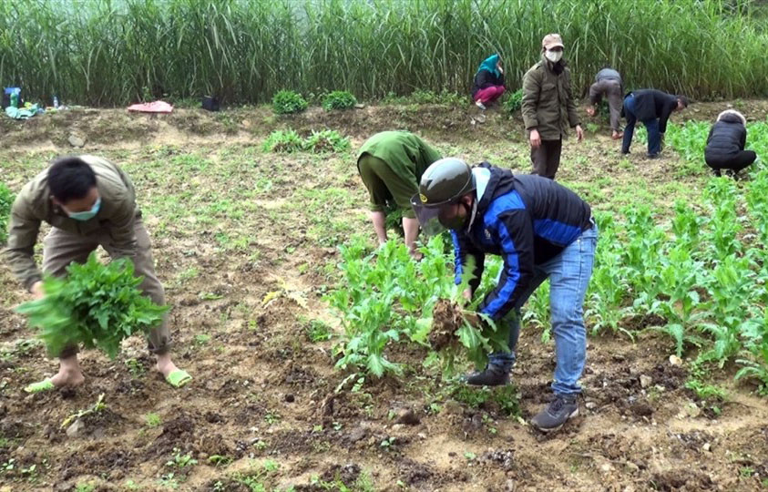 Cùng ngày phát hiện tại vườn nhà bà T.T.H. (SN 1960), trú tại xã Yên Định trồng 60 cây thuốc phiện. Tiếp đó, đến ngày 24/3, Tổ công tác kiểm tra, phát hiện tại vườn nhà ông H.Q.H. (SN 1963, trú tại thị trấn An Châu) trồng 71 cây thuốc phiện. Những cây thuốc phiện trồng trái phép có chiều cao từ 50 đến 120cm, một số cây đã ra quả