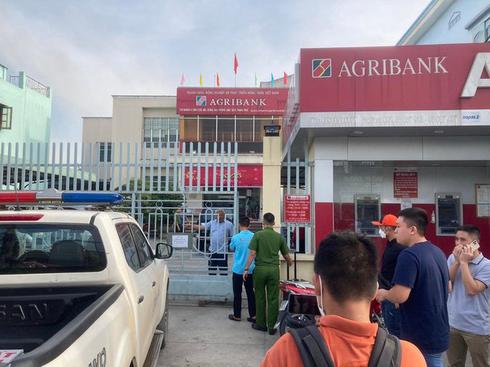 Thông tin ban đầu, khoảng 14 giờ 30, khi các nhân viên đang thực hiện giao dịch với khách hàng thì bất ngờ một thanh niên mặc áo khoác, đội mũ bảo hiểm đi vào.