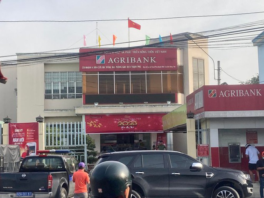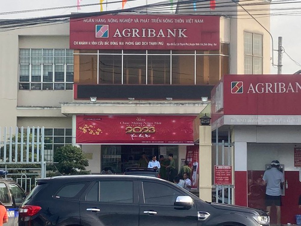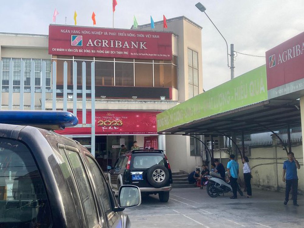 16 giờ chiều nay (28-12), tại phòng giao dịc ngân hàng Agribank Thạnh Phú (huyện Vĩnh Cửu, tỉnh Đồng Nai), rất đông công an huyện Vĩnh Cửu, Phòng CSHS công an tỉnh có mặt bên ngoài và trong trụ sở này.