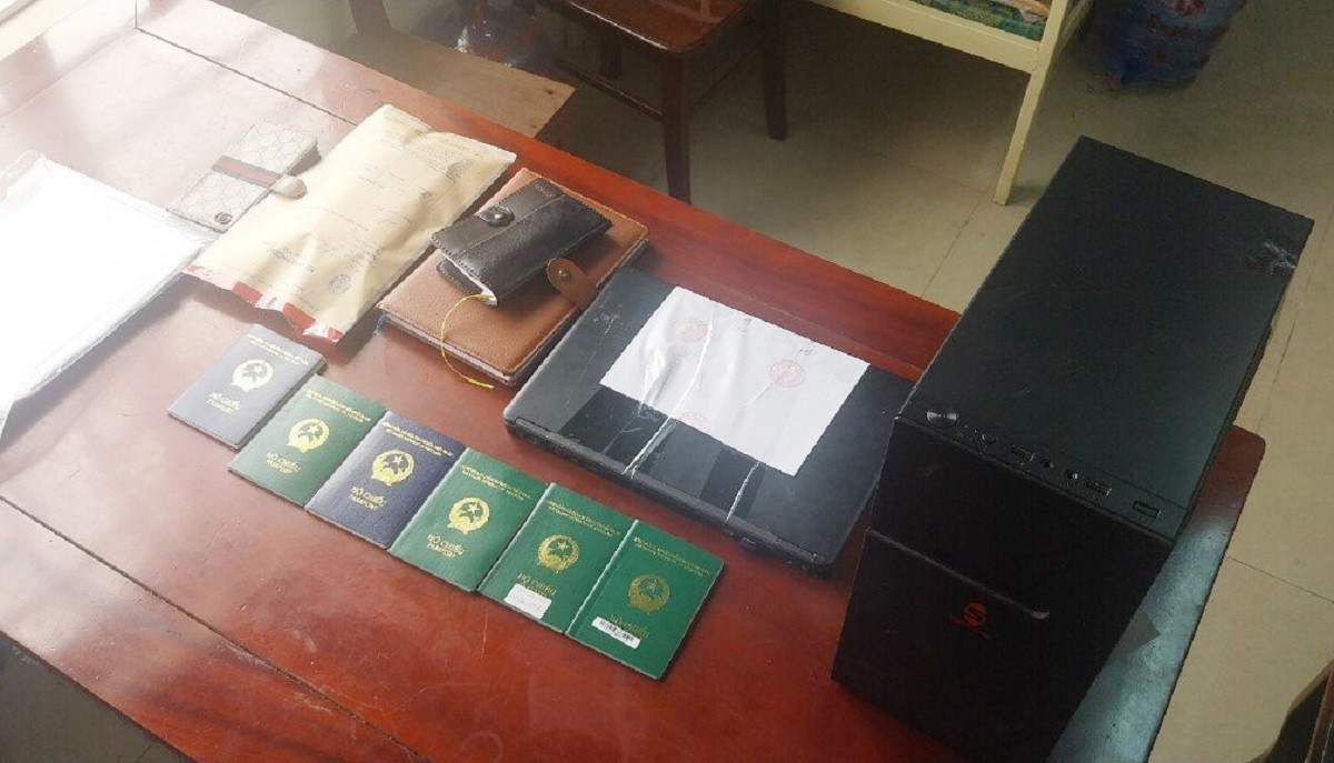 Tiến hành khám xét chỗ ở của đối tượng, cơ quan chức năng thu giữ 1 máy tính xách tay, CPU máy tính bàn, 3 điện thoại di động, nhiều hộ chiếu, hình ảnh lịch hẹn lăn tay xin visa, hình ảnh visa điện tử có dấu hiệu bị chỉnh sửa.