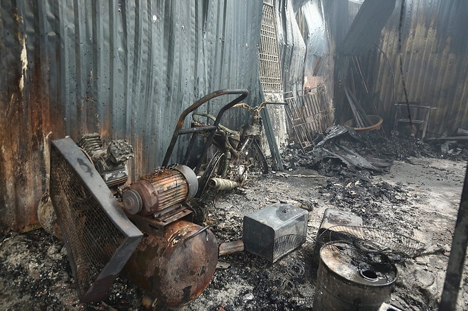 Tại hiện trường, cơ quan điều tra tìm thấy nhiều đoạn dây điện bị nóng chảy, vón cục, xác minh và kết luận nguyên nhân cháy do chập mạch điện. Tại cơ quan điều tra, ông Sơn khai cho công nhân ngủ tại xưởng nhưng phòng ngủ không được ngăn với gian sản xuất - khu vực thuộc nhóm nguy hiểm cháy nổ.