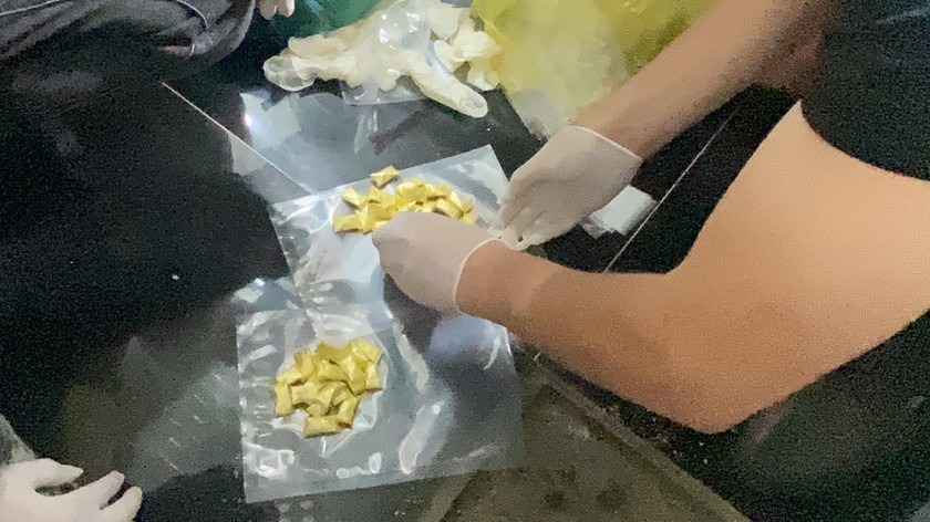 Tổ công tác đã lập tức khống chế đối tượng đồng thời yêu cầu đối tượng phối hợp tìm kiếm tang vật, thu giữ 14 gói ma túy đựng trong túi ni lông mà Vụ vừa vứt xuống suối.