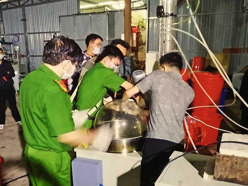 Sáng 6-8, tại nhà xưởng của Công ty TNHH Xuất nhập khẩu Đồng An Viên ở huyện Đắk Hà (Kon Tum), C04 chủ trì phối hợp với các cục nghiệp vụ liên quan và công an các tỉnh Kon Tum, Bình Dương, Bình Định, Ninh Thuận, TP.HCM, VKS Tối cao… bắt quả tang bảy người TQ đang sản xuất trái phép chất ma túy.