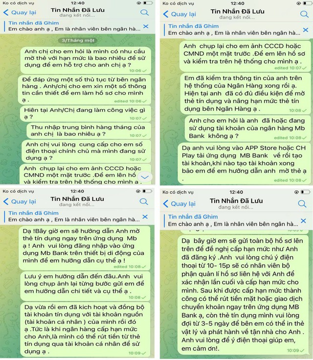 Tinh vi hơn, các đối tượng đã thuê lại phần mềm gọi điện qua Internet với 12 đầu số khác nhau; thuê phần mềm giả địa chỉ IP để phục vụ hoạt động phạm tội. Nhóm đối tượng này có nhiệm vụ giả mạo là nhân viên các ngân hàng để đăng thông tin quảng cáo trên các mạng xã hội như Telegram, Facebook, zalo để thu thập thông tin khách hàng muốn mở thẻ với hạn mức từ 50 triệu đồng đến 500 triệu đồng.