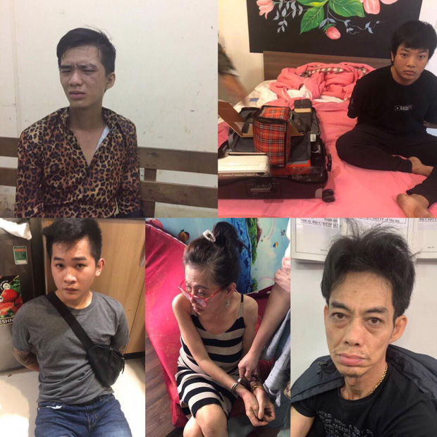 Hiện, công an đang giữ hình sự 7 đối tượng gồm: Nguyễn Hoài Phong (SN 1996, ngụ tỉnh Long An), Hoàng Công Thịnh (SN 1994, ngụ tỉnh Quảng Trị), Nguyễn Duy Tiên (SN 1996, ngụ tỉnh Bà Rịa - Vũng Tàu, cả 3 cùng ở tại căn hộ chung cư Sunrise City View, phường Tân Hưng, quận 7), Ngô Thế Bảo Ngọc (SN 1993, quận 4), vợ chồng Vương Văn Tuấn (tự Anh Hai) - Trần Thị Lệ (cùng SN 1976, ngụ quận Bình Thạnh) và Lê Đức Minh Anh (tự Khang, SN 1993, ngụ tỉnh Bà Rịa - Vũng Tàu, trú chung cư Mỹ Đức, phường 21, quận Bình Thạnh).