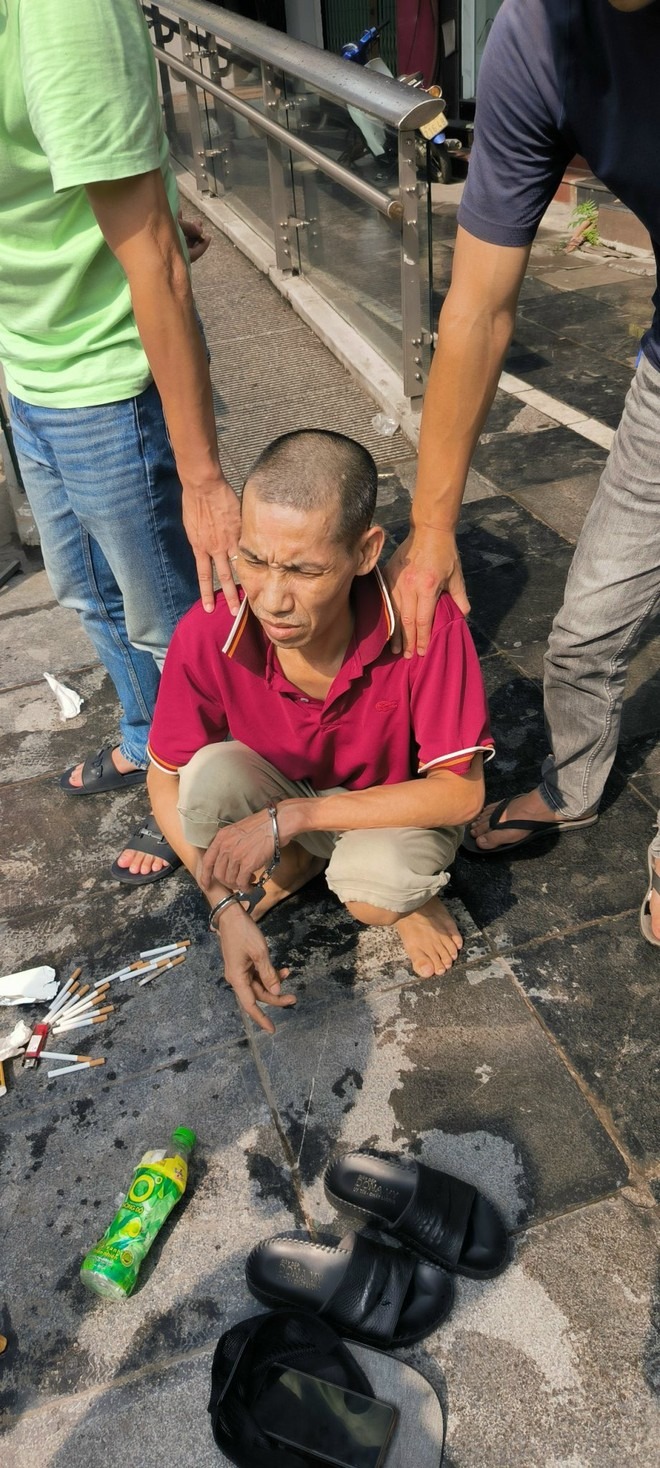 Giang lấy 2 bộ dụng cụ sử dụng ma túy rồi cùng Thắng, Tân, Sơn thay sử dụng. Hơn 1 tiếng sau, có khách gọi điện hỏi mua 400.000 đồng ma túy “đá; Giang đồng ý hẹn người này đến trước cửa nhà mình để giao dịch, thì bị bắt quả tang.