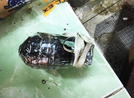 Lựu đạn được phát hiện tại cơ sở ma túy của Châu 'điên' - Ảnh: Đàm Huy |