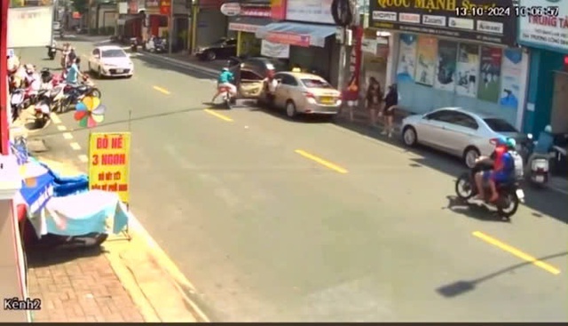 Trưa 13-10, Bà H. (48 tuổi) chạy xe máy trên đường Trương Công Định, TP Vũng Tàu (tỉnh Bà Rịa - Vũng Tàu) theo hướng từ Bãi Trước về sân bay Vũng Tàu. Khi đến nhà số 244 Trương Công Định thì một tài xế taxi mở cửa.