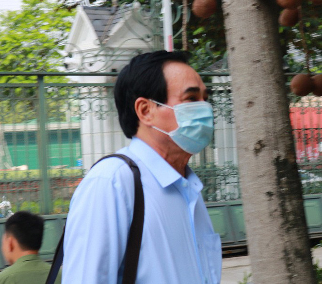 Khoảng 7 giờ 50 phút sáng nay, ông Trần Văn Minh, nguyên chủ tịch UBND TP Đà Nẵng, mặc áo màu trắng, quần tối màu, đeo khẩu trang và đội mũ tới dự phiên toà.