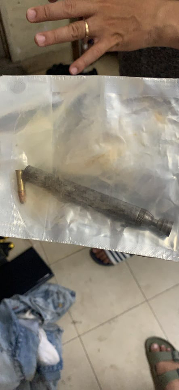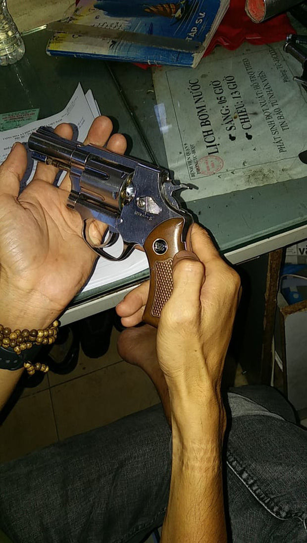 Qua làm việc, thanh niên khai tên là Việt đang làm bảo vệ, giữ xe của Bệnh viện quận 9. Khám xét tủ cá nhân của Việt tại Bệnh viện quận 9, công an thu giữ nhiều tang vật như: 1 khẩu súng Rulo, 2 khẩu súng tự chế có nòng ngắn, 35 viên đạn các loại, 2 vỏ đạn, 1 gậy ba khúc, nhiều ống tuýp sắt, kiếm,... và nhiều giấy tờ viết tay với nội dung mượn tiền.