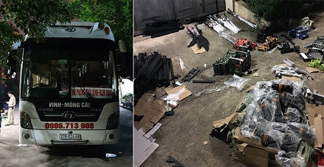 Công an TP Móng Cái (Quảng Ninh) đang điều tra vụ xe khách vận chuyển số lượng lớn súng và đao kiếm.