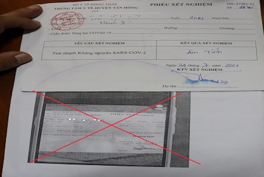11/08/2021 21:27Phạt tiền nam thanh niên sửa kết quả giấy xét nghiệm âm tính thành dương tính đăng Facebook