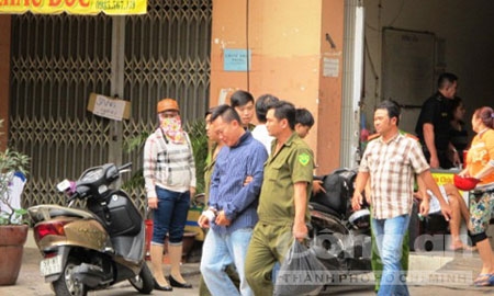 Công an đưa hung thủ về trụ sở công an |