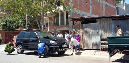 Hiện trường vụ bà Tuyết dùng xe đâm vào xe lực lượng chức năng - Ảnh: Đ.Hà |