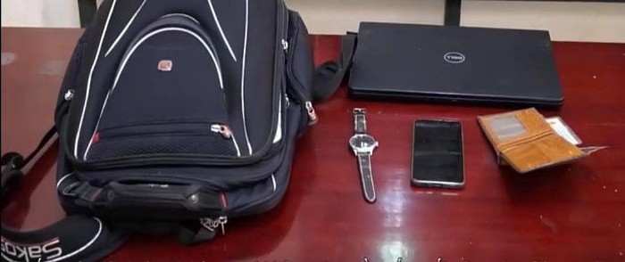 Kiểm tra bên trong ba lô có nhiều tài sản có giá trị như laptop, 1 điện thoại Samsung, 1 đồng hồ Seiko cùng tiền mặt và giấy tờ liên quan.