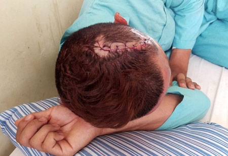 Anh Hùng bị côn đồ chém bị thương vùng đầu. Ảnh: CTV.