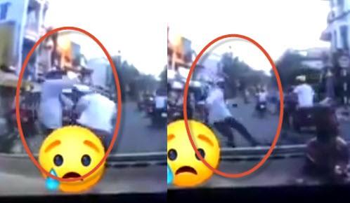 Bị đạp khi đang ngồi trên xe chuẩn bị đi, nam thanh niên kia lao vào đấm anh H túi bụi. Anh H loạng choạng, ngã xuống đường nhưng vẫn bị đối phương đá vào bụng, mặt và đấm lên đầu.