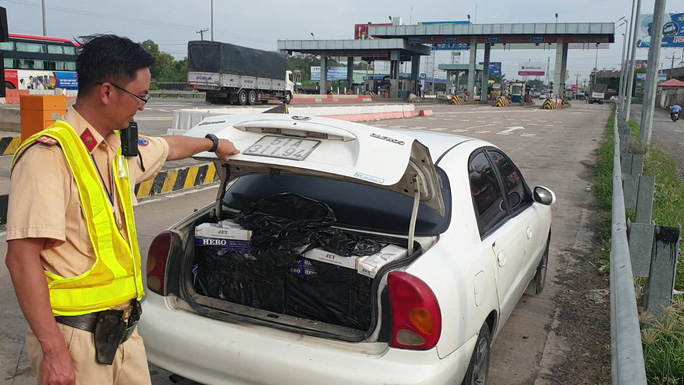 Khi thấy CSGT, Vũ dừng xe giữa đường rồi bỏ trốn. Tổ CSGT đã điều khiển xe vào trong lề và kiểm tra, phát hiện bên trong có chứa 8.870 gói thuốc lá nhập lậu.
