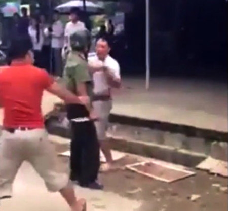 Sáng 17-7, trên mạng Internet xuất hiện một clip quay lại hình ảnh một người mặc sắc phục công an đánh nhau với một người lái xe tải.
