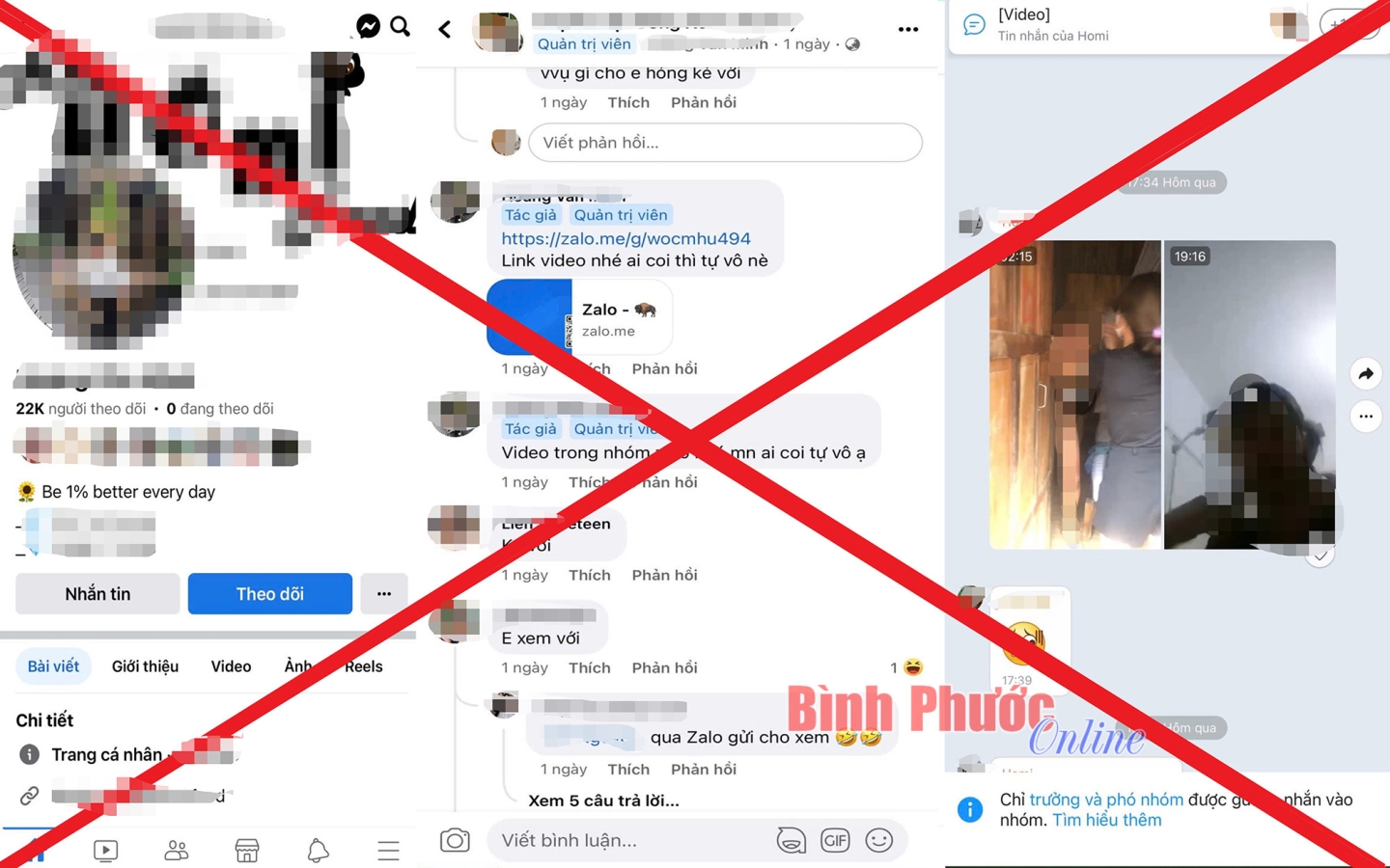 Do Facebook không cho phép đăng các video có nội dung dâm ô, đồi trụy nên M. đã tạo một nhóm Zalo để những người người tham gia nhóm xem video.Phòng Cảnh sát hình sự Công an tỉnh Bình Phước đã bàn giao đối tượng cùng các tang vật có liên quan cho Cơ quan Cảnh sát điều tra Công an huyện Đồng Phú tiếp tục điều tra xử lý theo thẩm quyền.