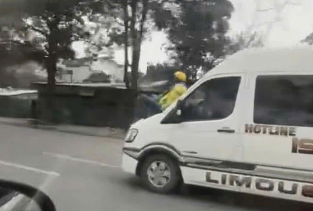 Trong clip đăng tải hình ảnh nam thanh niên mặc trang phục "xe ôm công nghệ" ngồi trên nắp capo của xe ô tô limousin Nhật An, đang di chuyển trên đường gây mất an ninh trật tự, nguy hiểm cho người tham gia giao thông.