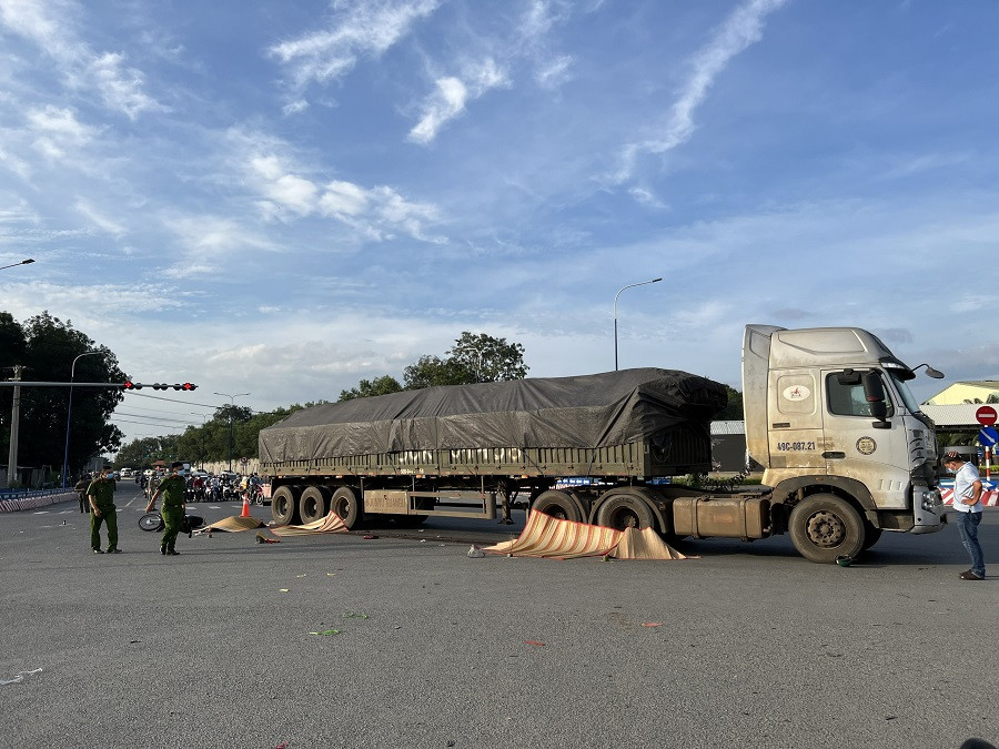 Khi rẽ trái được khoảng 10m, tài xế nghe thấy tiếng động dưới gầm xe nên dừng lại mở cửa xuống thì thấy đã va chạm với xe máy khiến 4 người trên xe tử vong, các thi thể nằm ở bánh trước, bánh sau của xe đầu kéo.
