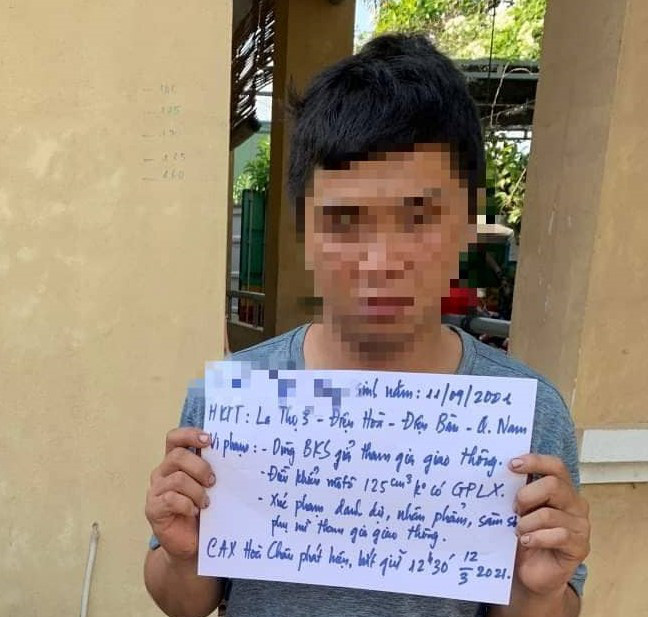 Qua kiểm tra, xe máy của Q. sử dụng biển số giả, không có giấy phép lái xe. Q. đã từng công an Quảng Nam xử phạt hành chính vì hành vi sàm sỡ.