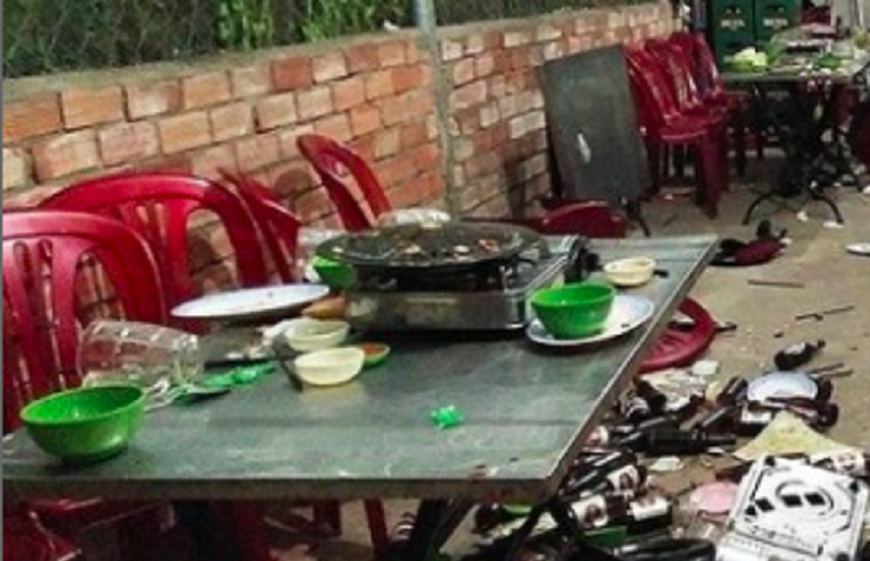 Cho rằng anh Hiên xem thường, đuổi khéo mình nên Dũng tức mình bưng luôn nồi lẩu đang sôi trên bàn tạt vào người anh này.
