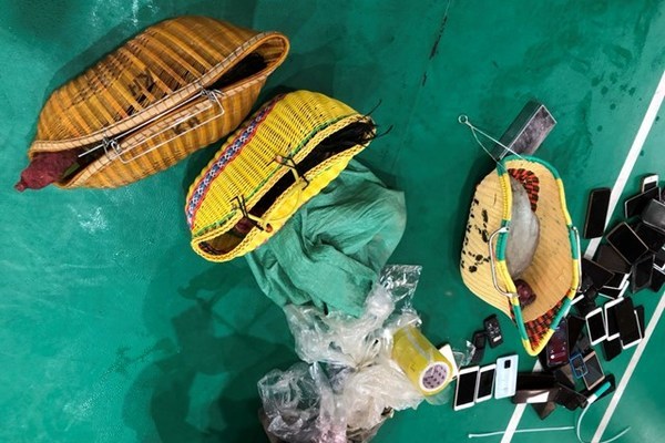 Tại hiện trường, công an thu giữ tiền mặt, hàng chục chiếc điện thoại, làn nhựa chứa bên trong những con gà chọi cùng nhiều “công cụ” đánh bạc khác.