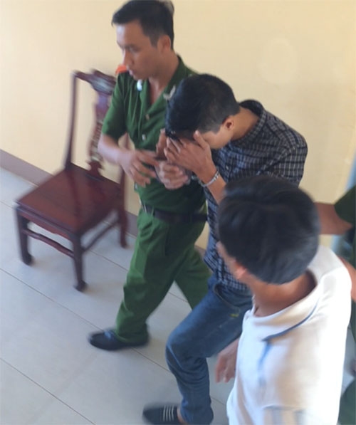 Dẫn giải nghi can Nguyễn Hải Dương từ trụ sở công an huyện Chơn Thành về cơ quan CSĐT công an tỉnh Bình Phước. |