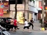 Cú tông trực diện khiến một thành viên trong tổ công tác ngã xuống đường, Khoa và bạn đi cùng cũng ngã xe tại chỗ và bị lực lượng chức năng khống chế ngay sau đó.