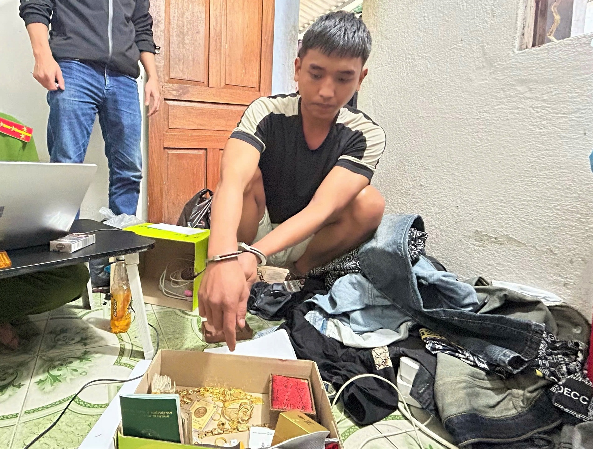 Khám xét khẩn cấp nơi ở của đối tượng tại phường An Hải Nam (quận Sơn Trà, Đà Nẵng), cảnh sát thu giữ 22 nhẫn vàng các loại, 3 sợi dây chuyền vàng, 2 miếng vàng PNJ 9999 và một số tài sản khác.