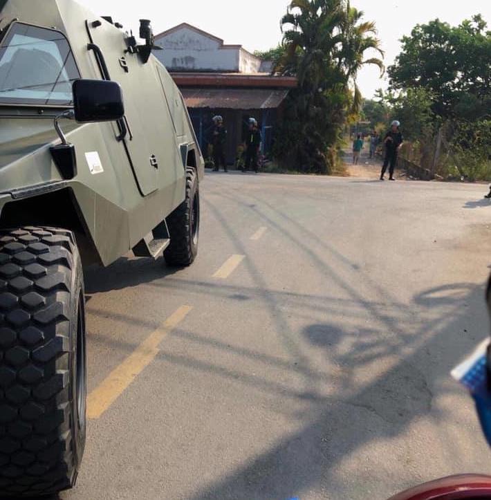 Hiện trường được phong toả hoàn toàn, nhiều xe chuyên dụng chở hàng trăm chiến sĩ thuộc nhiều đơn vị công an có mặt ở hiện trường.