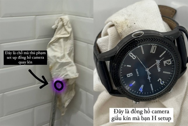 Sau khoảng 30 phút thay đồ trong phòng, nữ người mẫu thấy ở góc nhà vệ sinh có vật thể hình tròn giấu dưới một chiếc khăn trắng. Sau đó, ekip của nữ người mẫu kiểm tra và xác định đây là thiết bị quay lén, loại ngụy trang đồng hồ đeo tay. Trích xuất hình ảnh từ thiết bị quay lén.