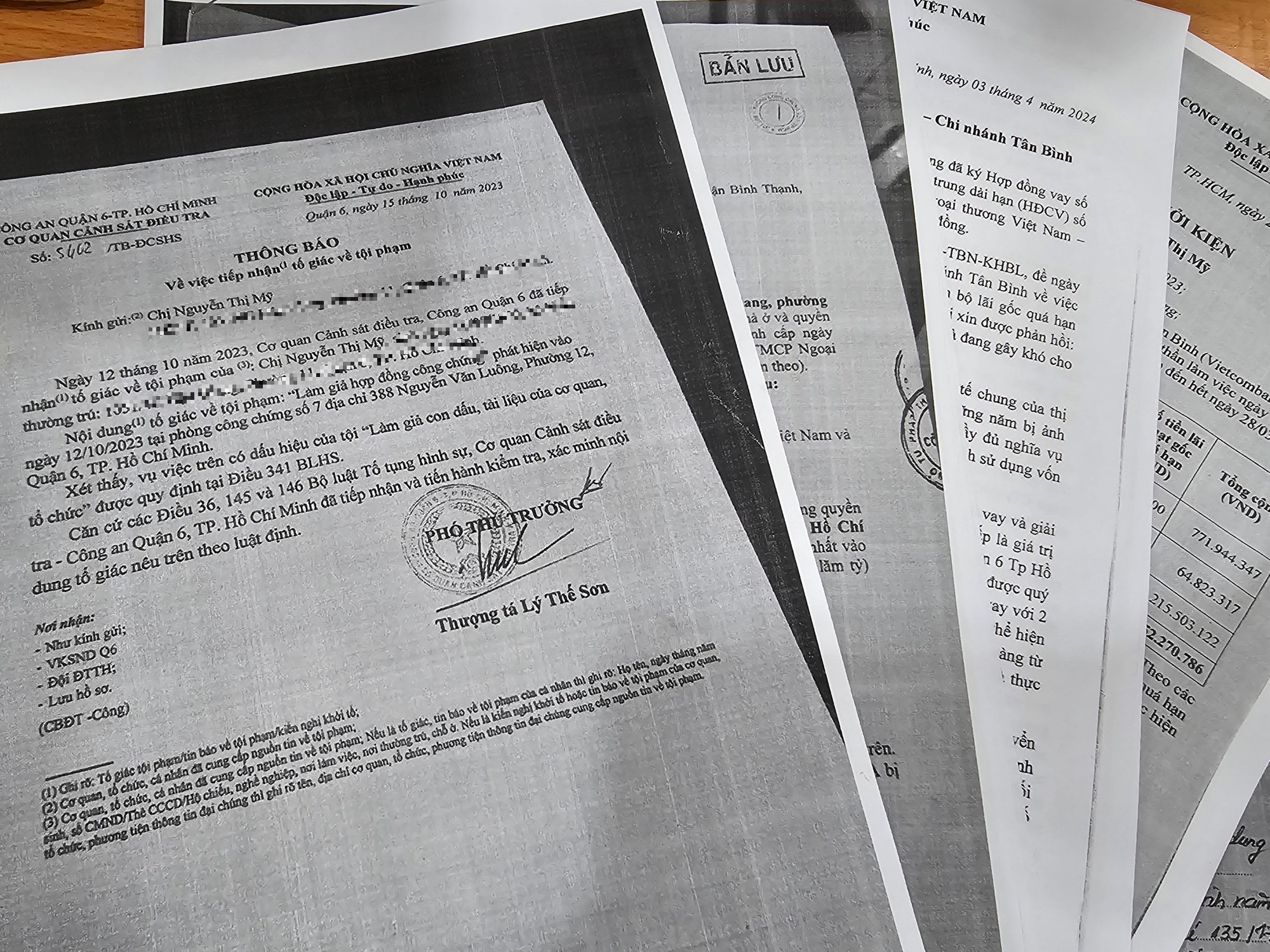 Theo đó, bà Nguyễn Thị Mỹ đã có đơn tố giác công chứng viên N.H.P.N. của Phòng Công chứng số 7 (quận 6), ông N.H.L.Đ. (ngụ quận Bình Thạnh, TP HCM) và một số cá nhân làm việc tại chi nhánh một ngân hàng thương mại.