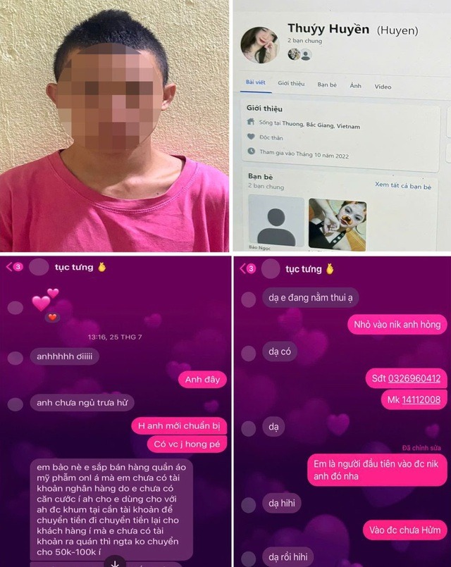 Lo sợ làm "người yêu" phật lòng, anh K. không ngần ngại cung cấp thông tin facebook, tài khoản ngân hàng của mình cho "Thuýy Huyền". Sau khi chiếm quyền kiểm soát, tối 27/7/2024, Hà Khắc Q. phát hiện anh K. có nhắn tin với chị Nguyễn Thị T. về nội dung chuyển tiền qua tài khoản.