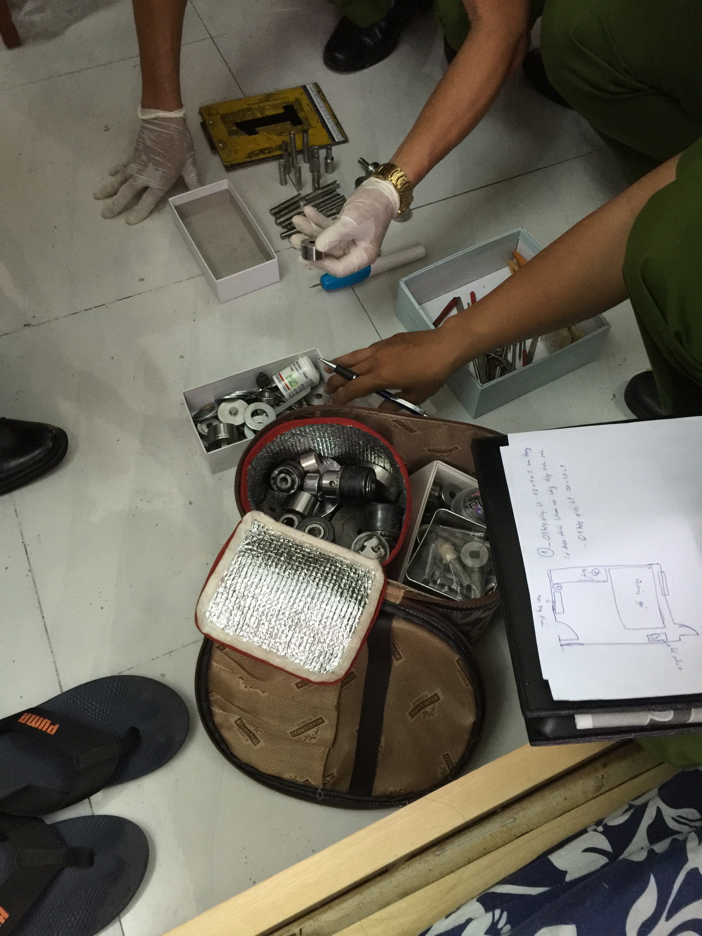 Kiểm tra cốp xe SH của đối tượng, công an thu giữ 1 bánh heroin. Khẩn trương khám xét căn nhà Phương thuê trên đường Lưu Hữu Phước, công an thu giữ thêm 8 bánh heroin, 49,76gram ma túy đá và nhiều dụng cụ đồ nghề dùng để pha trộn, dập ép ma túy.
