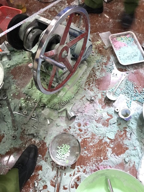 Máy dập thuốc lắc sau khi đã pha trộn hóa chất